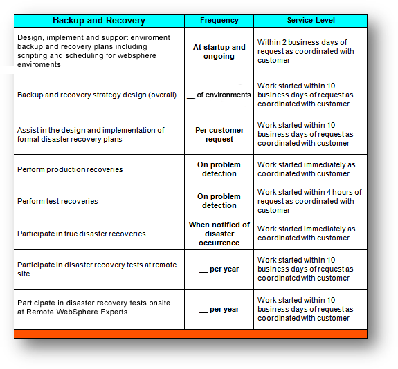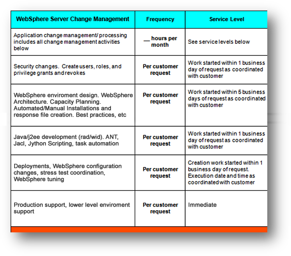 Everything we do is governed by a Service Level Agreement (SLA). WebSphere Experts custom tailors a SLA with each client at the beginning of the sales process. You describe the tasks, frequency and service levels to be expected from our team.
